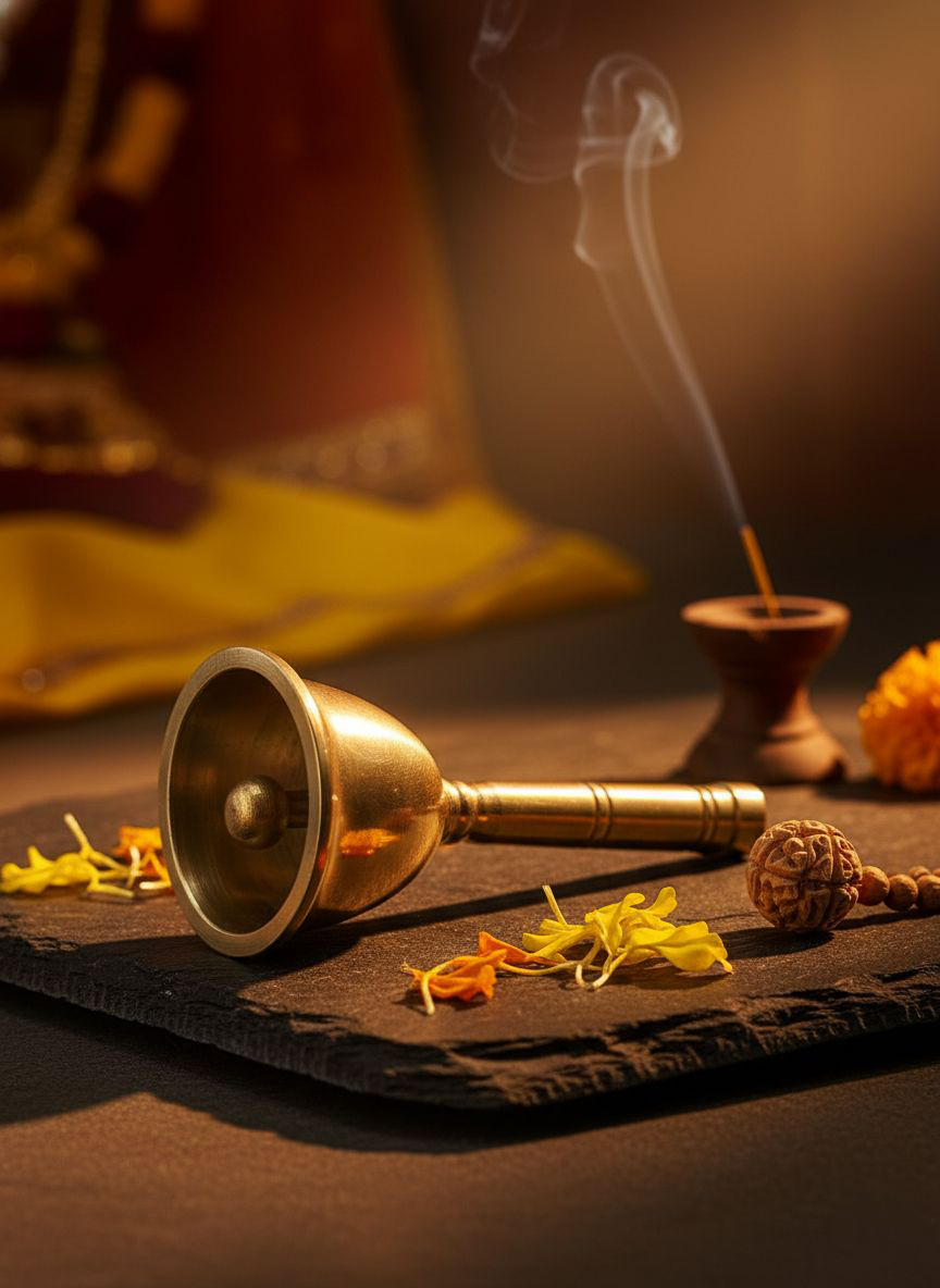 Made from high-quality solid brass, this puja bell is durable, corrosion-resistant, and built to last for years. The rich golden hue of brass enhances the divine atmosphere of your prayer space, symbolizing purity and auspiciousness.