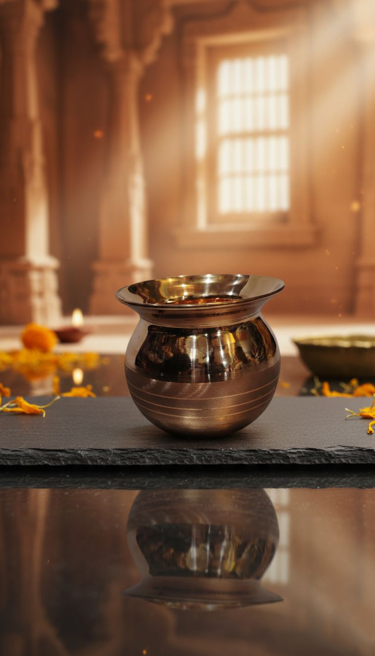 Crafted from pure copper, this beautifully polished large puja lota is perfect for storing and offering holy water during pooja and rituals. A symbol of purity, devotion, and tradition, ideal for both home and temple use.
