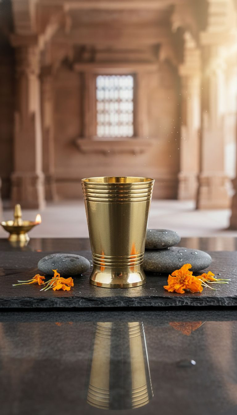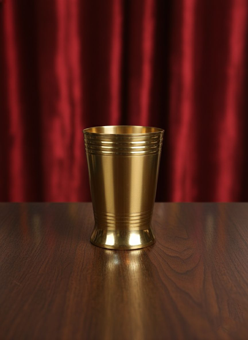 This pure brass drinking glass combines health benefits and traditional elegance. Perfect for daily use, gifting, or pooja rituals, it brings a touch of Indian heritage and wellness to your home.